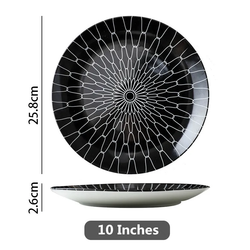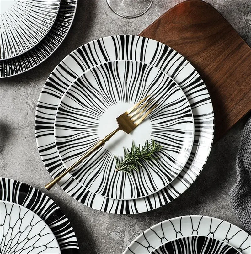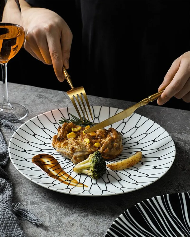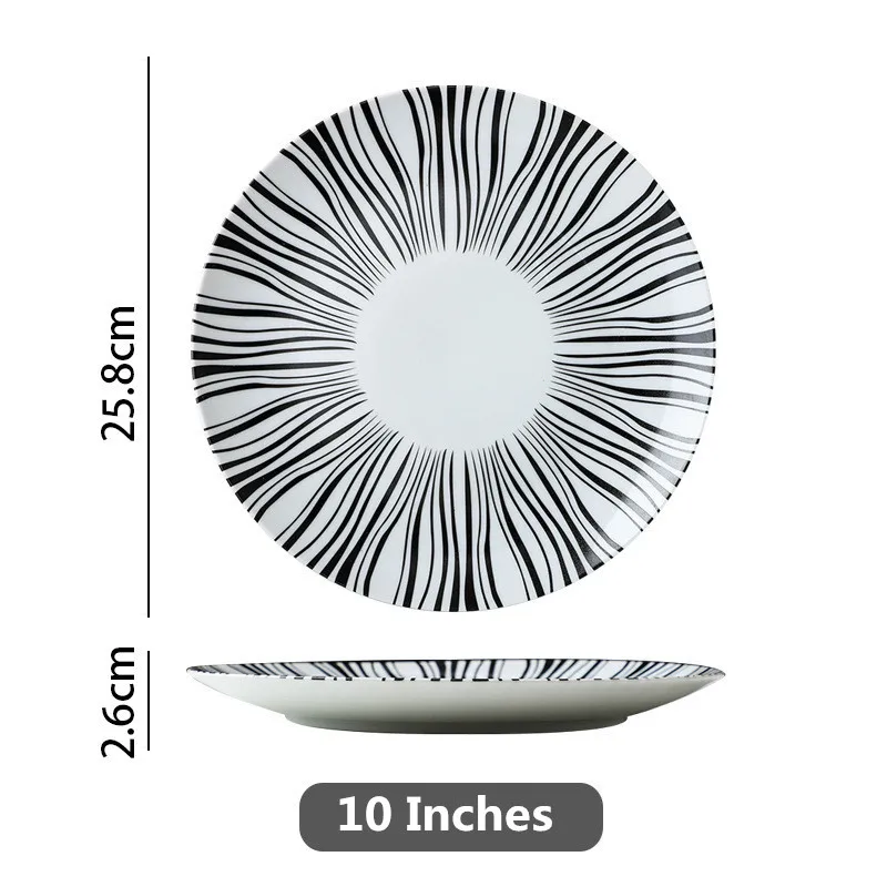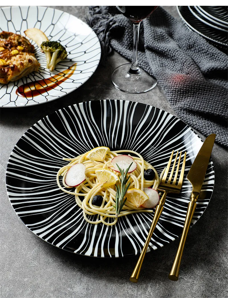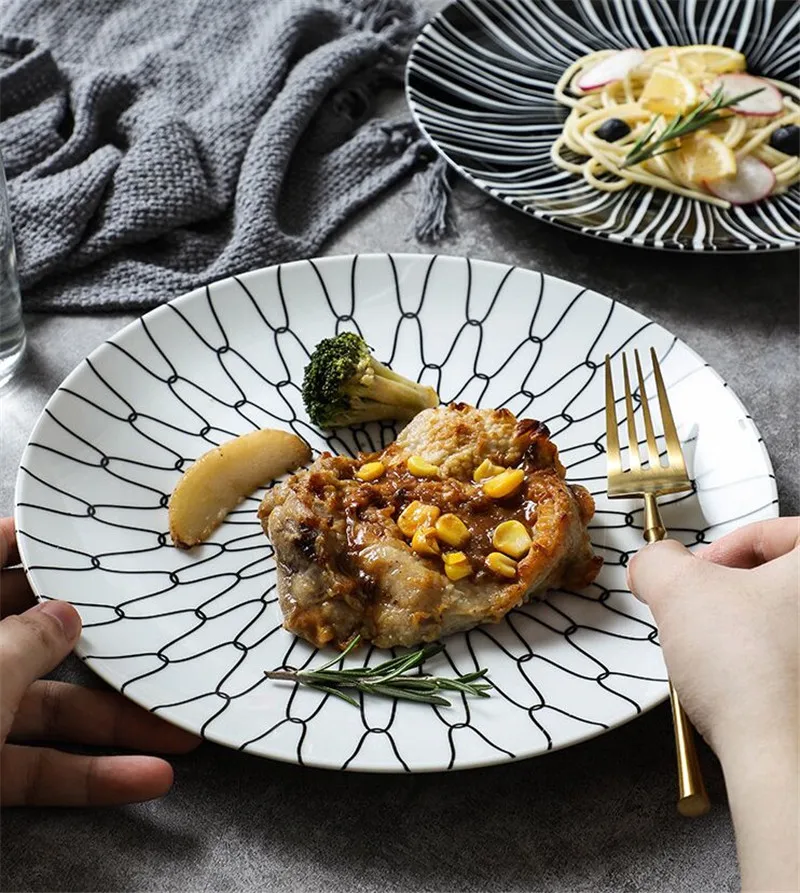 Black & White Stripe Ceramic Dinner Steak Plate